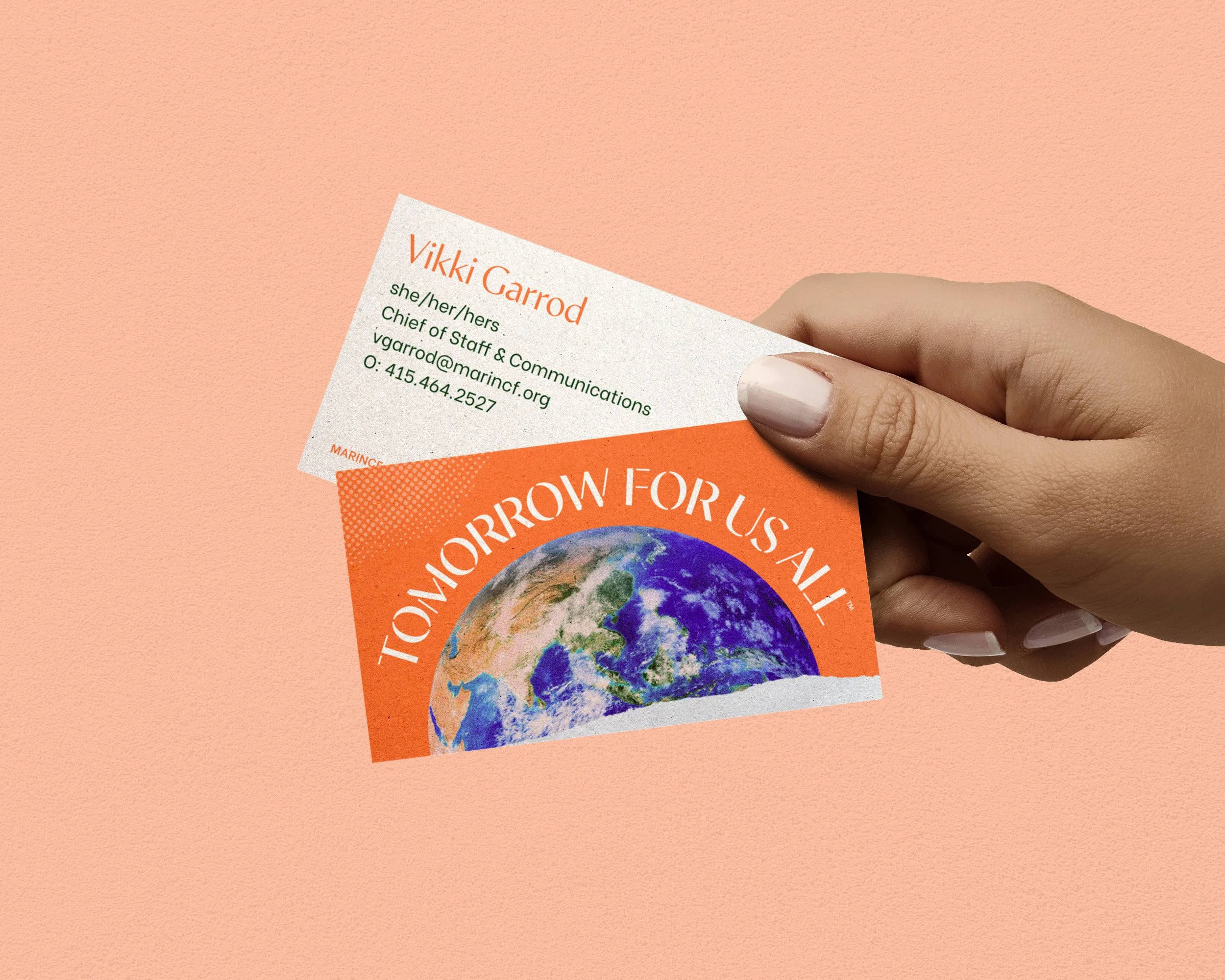 We created a brand identity that feels as bold, welcoming, and forward-looking as the community MCF serves. Inspired by Marin itself, we introduced a vibrant color palette drawn from local icons—the lush greenery of Mount Tamalpais, the vivid orange of wild poppies, and the golden spirit of California. At the heart of the identity is the new logo, featuring “Sunny,” a rising arch that symbolizes a new dawn. Anchored by the rallying call Tomorrow for us All™, the new brand reflects MCF’s promise: to work with urgency, lead with equity, and believe in a brighter future for everyone.