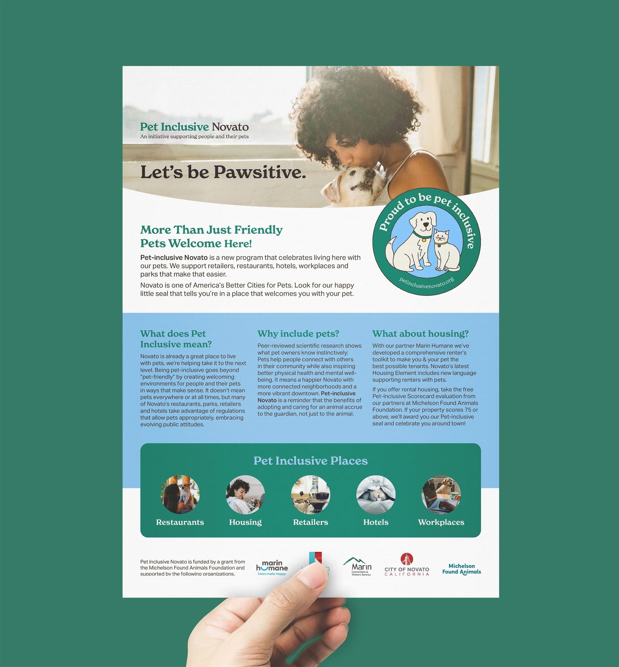 Pets are more than companions, they’re bridges to connection. We believe with the right brand and strategy, small programs can spark big cultural shifts. We’re excited to see how Pet Inclusive Novato and city policies define a new way to officially incorporate pets into our communities.